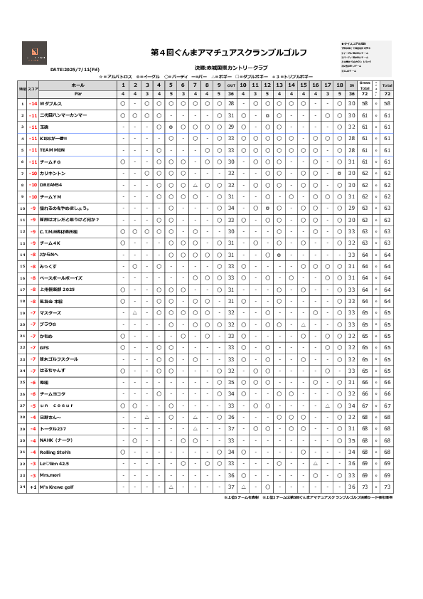 ぐんまアマチュアスクランブルゴルフ成績表(第1回・第2回・第3回・第4回)